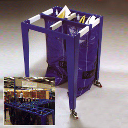 rows of bag label hooks.